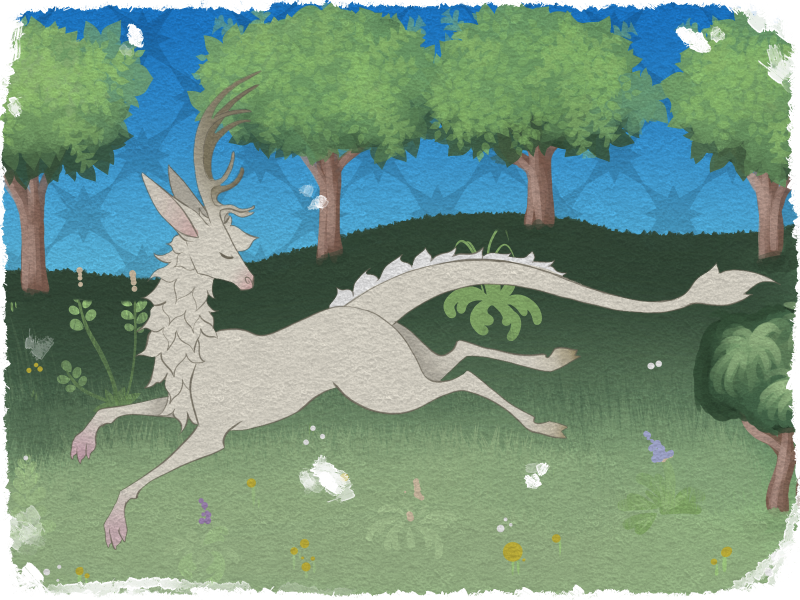 Asgard is known as the realm of the Norse Gods, sitting near the top of the World Tree, known as Yggdrasil. It was in this realm that the god Loki, bringer of mischief and trouble, conceived the idea of the very first waywick. After being refused to join three hunters -- Odin, Skaði, and Ullr -- on a hunt, he began plotting a way to get back at them, to make them feel the same frustration he felt at his denial. Before long, he concocted the idea of the most beautiful prey anyone had ever laid eyes upon; one with a stunning coat, great size, and an over-all astounding air of beauty about it. The perfect target for a hunter, indeed, but with one con: It would be impossible to catch. The thought of leading the great hunters on such a wild goose chase amused Loki so much that he created such a being and sent it to the grounds used for such hunts -- a small realm known as Hringr.It wasn't long before the "faux deer" was spotted and, as planned, targeted. The creature led the hunters on several long, tiring pursuits, before the hunt was eventually called off in favor of other prey. Before long, the creature was accepted as a being of the immense forest and was respected as such, left to wander the forest with the other wildlife and beings that inhabited it. In time, the faux deer discovered doorways -- a sort of portal -- and in it's wisdom discovered that it, too, could pass through them as it had seen the gods do many times prior. It discovered that if it were to pass through these doorways, it could traverse to the other 9 realms that Yggdrasil bore, and it spent a great amount of time simply travelling.In it's journeys, the creature found itself enjoying the secluded forest on an island inhabited solely by the wildlife that graced it's surface and its oceans. Deciding that this place was to it's liking, the being declared the island it's home and took up residence in the peaceful forest.