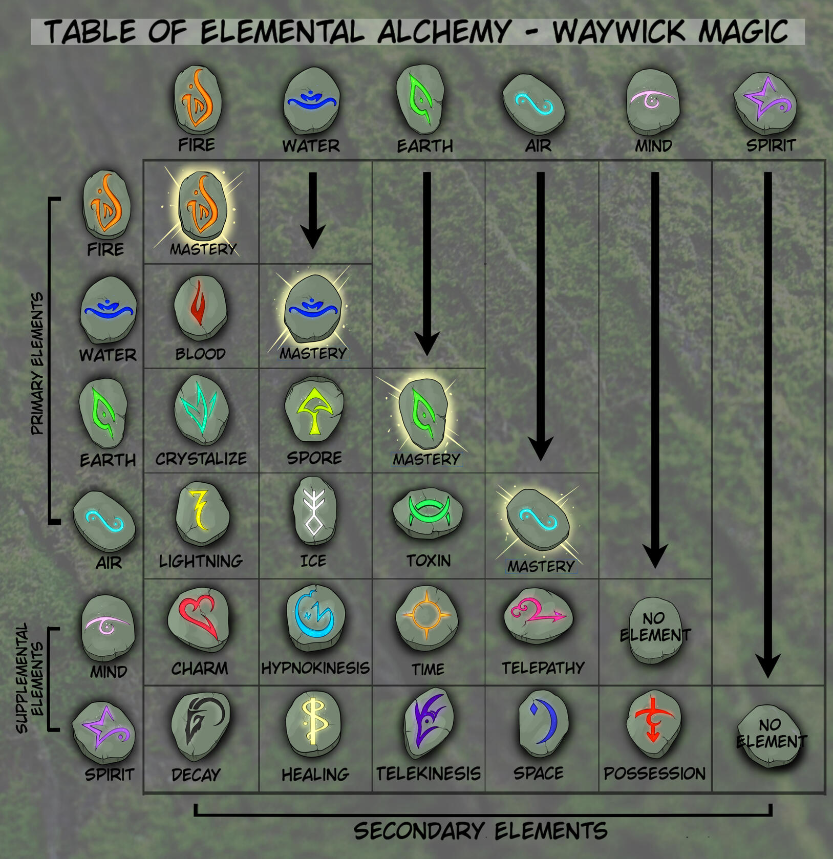 - Elemental Magic /ell-eh-MEN-tuhl MAH-jik/ - Supernatural abilities connected to one or many of 21 different elements.- Elemental Mastery /ell-eh-MEN-tuhl MAH-stir-ee/ - The strongest a connection to an element can get, limited to primary elements (water, earth, fire, air)- Energy Hybridization /EN-err-jee HI-brid-iz-AYE-shun/ - (of reproduction) The act of merging a piece of energy from one parent with that of a partner waywick. An action specific to reproduction.- Energy Signature /EN-err-jee SIG-na-chur/ - The specific make-up of an individual's energy. A waywick's energy signature is as unique to them as someone's DNA coding.- Enlightenment /en-LIE-ten-ment/ - (1) The act of devoting one's life to studying and living the ideals of móðir. (2) Having a fourth ring.