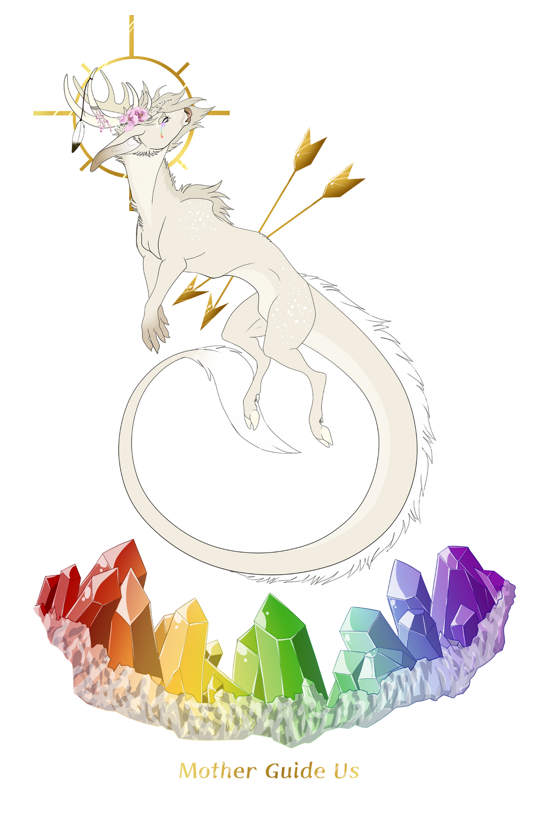 It was angry. It was scared. It had lost it's human. A part of it wanted vengeance, a feeling it had never experience before. For days on end the False Deer wept, and in an attempt to heal it expelled the negative vengeful energy, causing a rift in it's life source energy. For a moment the energy manifested and stood there beside the beast, staring at it's other half. It was similar to the beast, but there was an eeriness that the beast lacked. With a flash of light, the dark energy vanished and the creature was once again alone.Feeling no better, the creature once again began to weep, running deep into the forest. Each tear that fell seemed to take a small piece of the spirit's energy with it, crystallizing before landing softly upon the forest floor. The crystalline tears nestled the small slivers of energy trapped within, as if they were trying, little by little to comfort the creature.