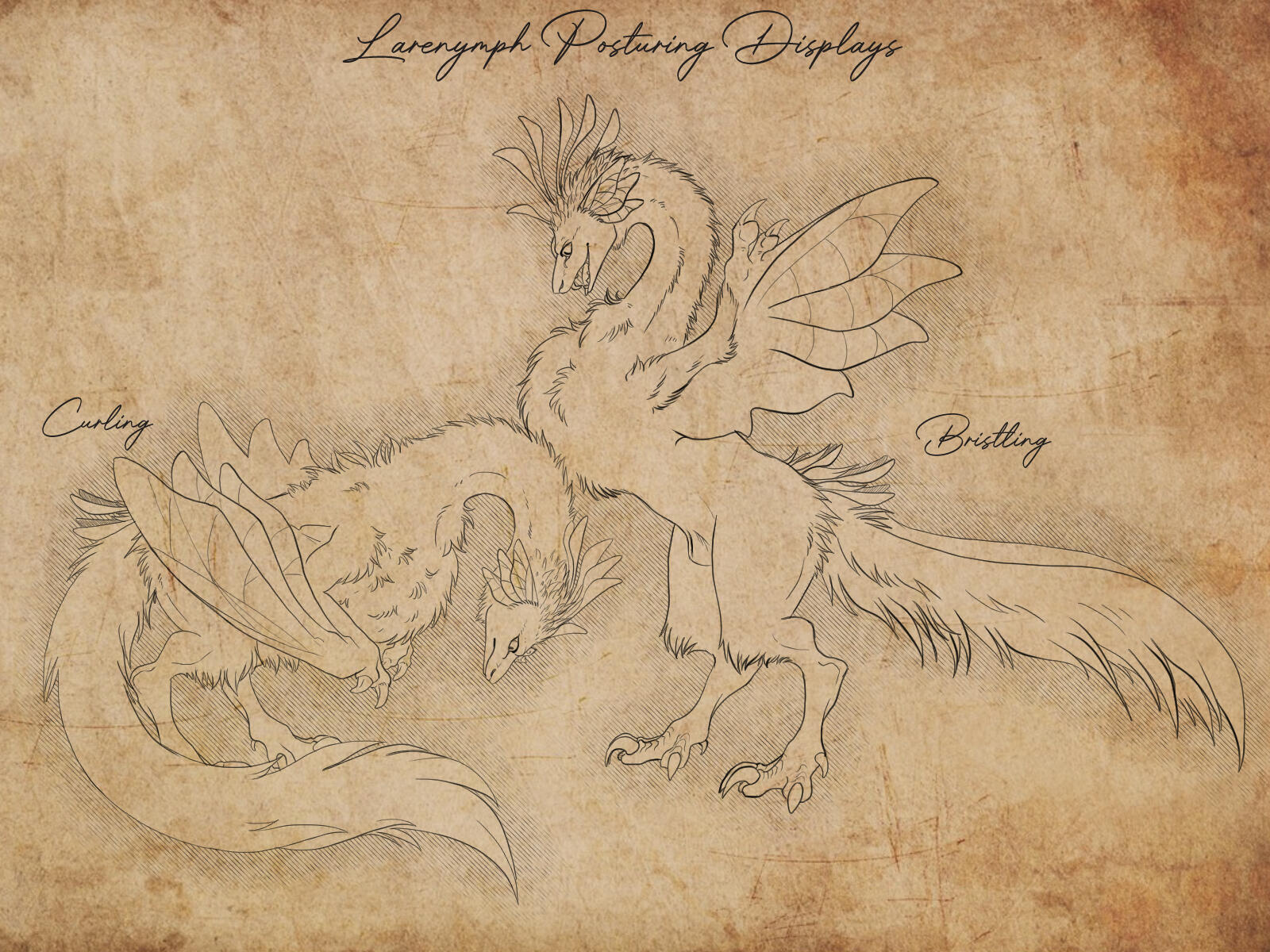 - Piety /pEYE-it-tee/ - The connection one has with móðir that directly ties into the number of rings a waywick has. Clerics and the Enlightened have more rings due to their higher levels of piety, whereas a waywick with one ring may not be very pious.- Phantom /FAN-tum/ - A body-type mutation characterized by a smaller, leaner stature and significantly less mane growth.- Posturing /POSS-chyur-eeng/ - (Of Larenymphs) A show of dominance between two larenymphs wherein they take identical stances and assert themselves by growling and making various noises of aggression.- Pressing /prESS-eeng/ - A behavior found in adolescent waywicks who are beginning to grown their horns. This action is characterized by the individual pressing the top of their head (or wherever else horns may be growing) against a hard surface to apply counter-pressure to the sore location.