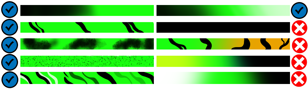 -- Have stripes or patches of lighter/darker version of same color ( "Variegated")