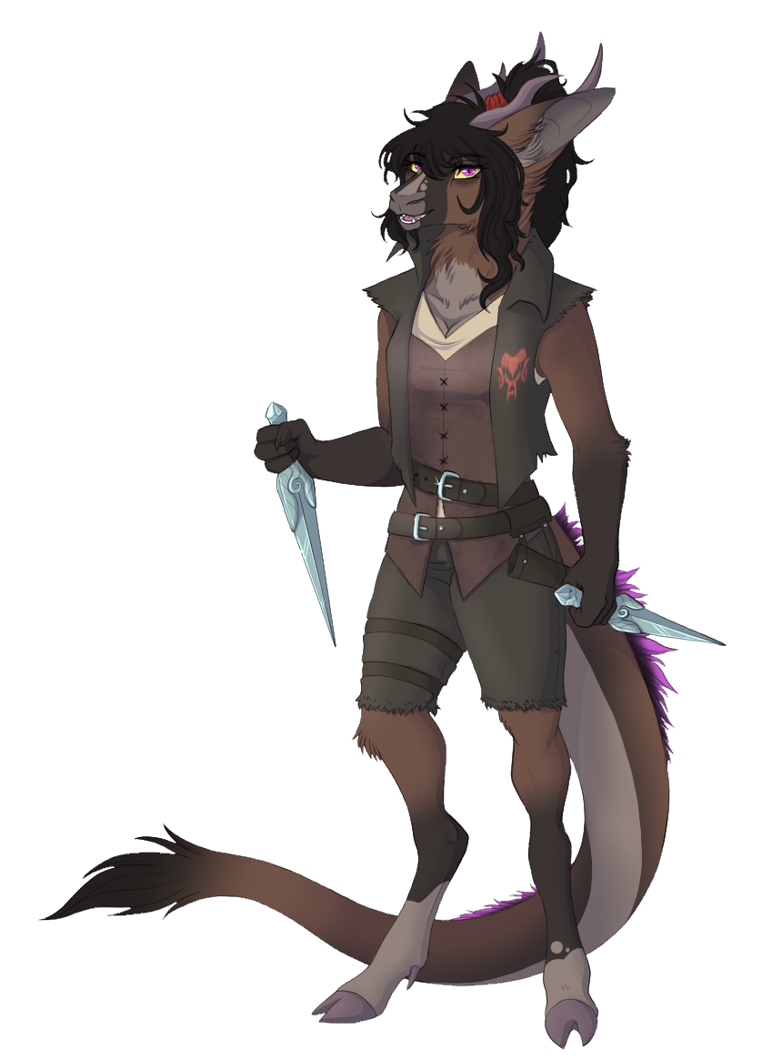 She/HerSnake eyes is a close cohort of Silver Tongue, who has made a very big name for herself by pairing her weapons with her Toxin element. She almost obsessively looks up to Silver Tongue, who simultaneously took her in and provided (his line of) work for her, but also feeds her Lumenshade addiction. Snake Eyes will follow Silver on any job that he allows her to, and is usually the one who does any sort of combat or hunting-related tasks. She is notably less stable than Silver Tongue, proving herself to be sly, loud and quick to react.