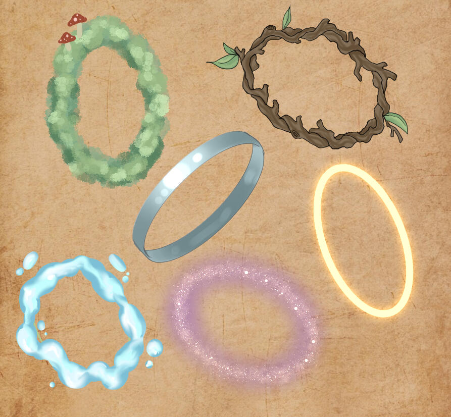 A unique trait to the species, waywicks have something called rings - items similar in nature to halos. Rings began to manifest on waywicks after móðir's death when the first waywicks began to emerge from their crystalline tears.Rings are indicative of the connection a waywick has to móðir - a visual representation of their spiritual status, in a sense. The stronger a waywick's spirituality, the more rings they have; with each ring holding a specific meaning behind it.